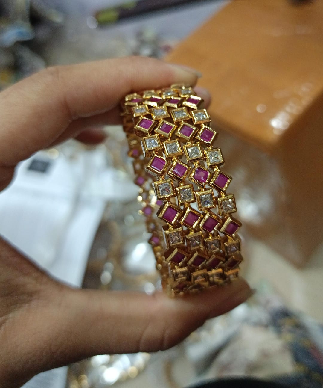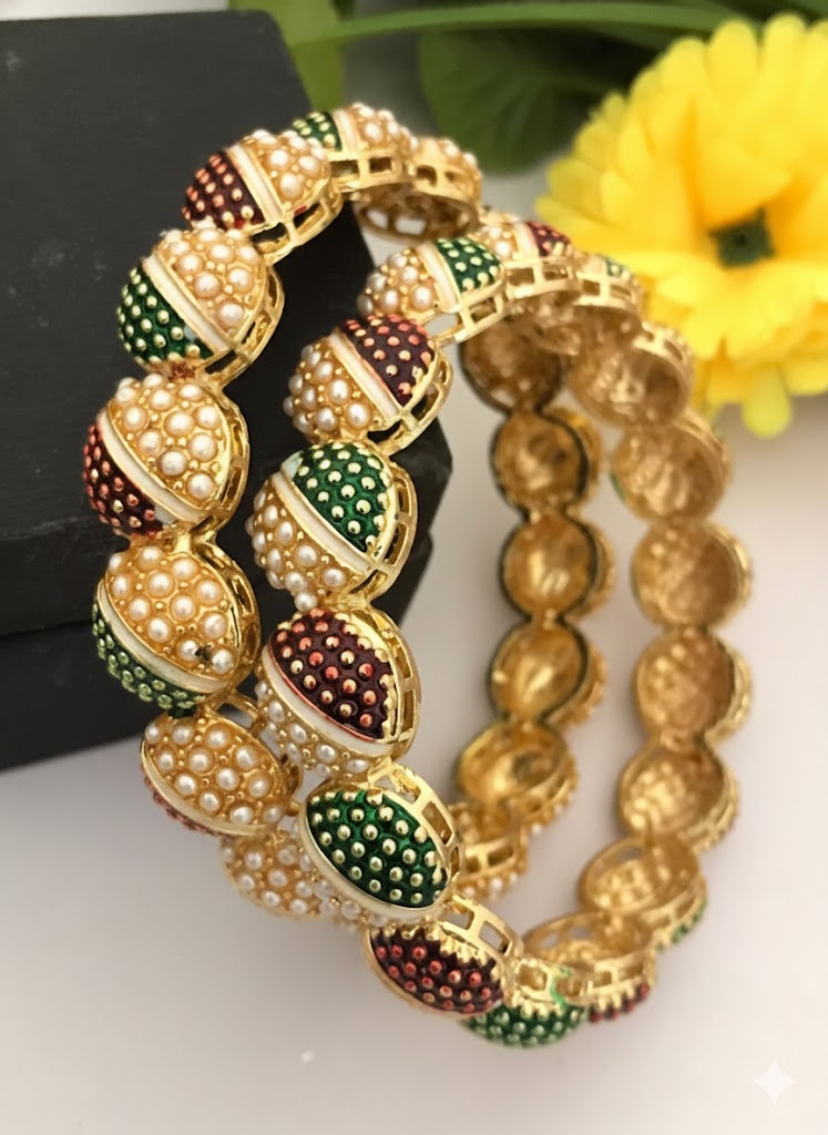 Gold-Plated Kundan & Pearl Bangles (ID # DV1790)