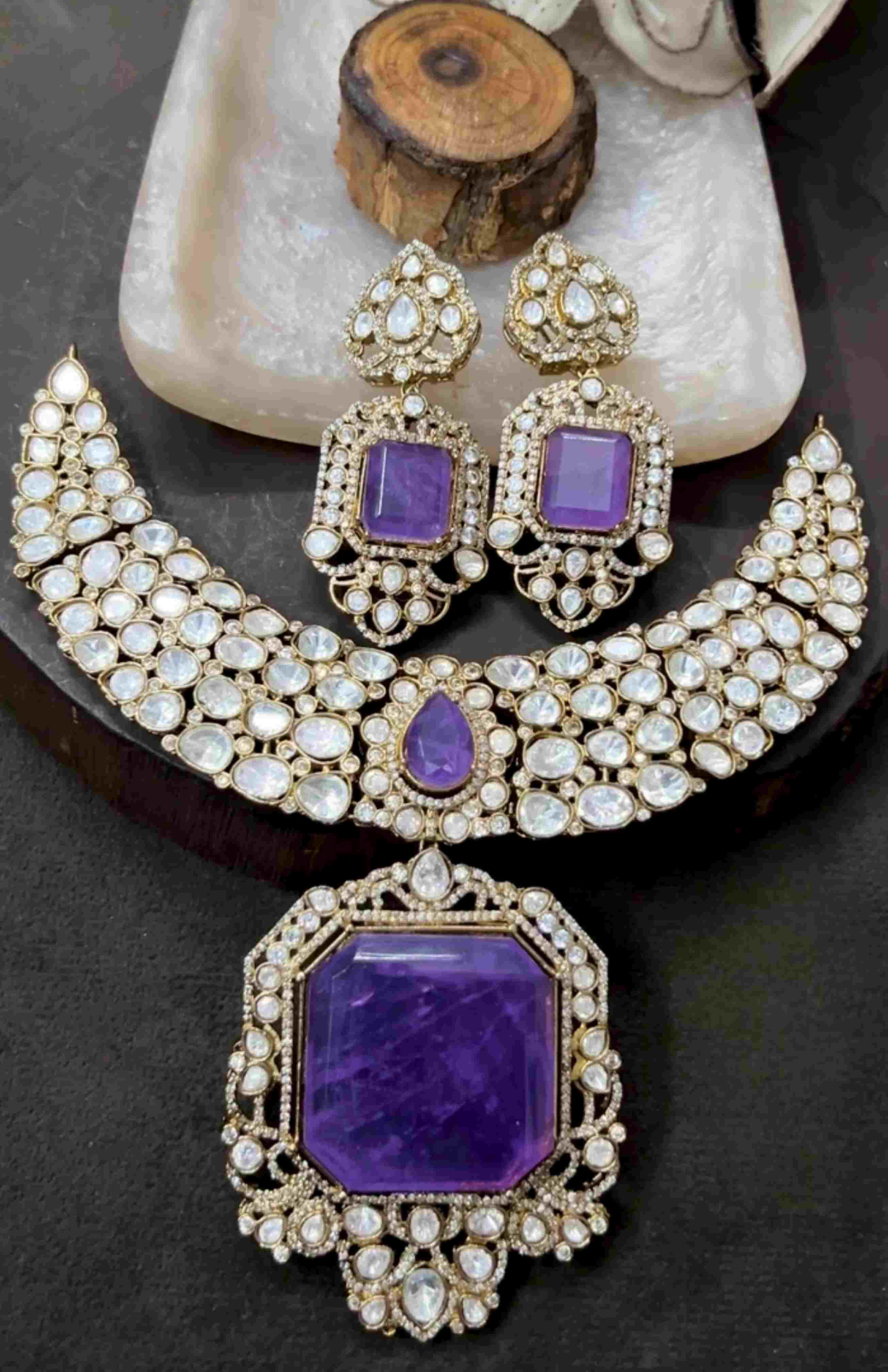 Royal Amethyst & Polki Kundan Necklace Set