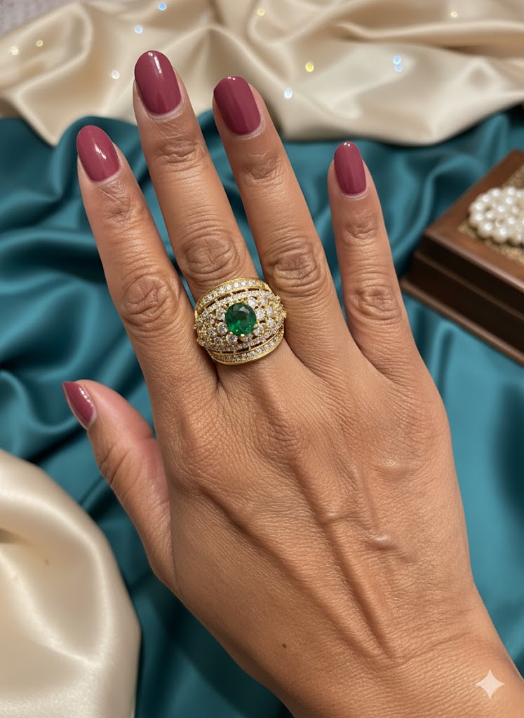 "Verdant Majesty" Emerald & Diamond Dome Ring (ID # DV1659)