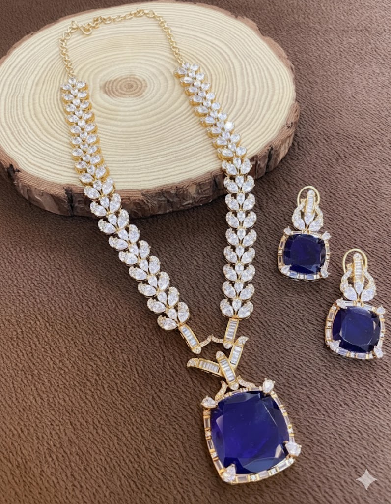 "Regal Duchess" Gold-Tone CZ & Sapphire Blue Necklace Set